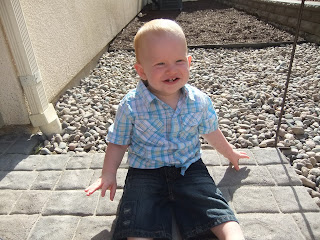 Carter is certainly a toddler now. He throws mini tantrums when he doesn't get his way, he runs from me when I tell him it's time to get dressed, he doesn't like to share and he has a mischevious grin that my Mom thinks is so adorable and I know means trouble! My little nickname for him is Dennis the Mennace...which is even more fitting when I dress him in his Osh Kosh overalls!